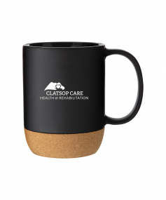 13 oz stoneware: matte color out / gloss color in with cork baseHand wash recommended. Do not microwave. Complies with FDA, Prop 65. 4.625" H x 5" W
