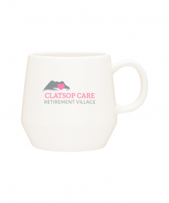 16 oz stoneware: matte color out / glossy color in. Hand wash recommended. Microwave safe with non-metallic imprint. Complies with FDA, Prop 65. 4" H x 5.38" W