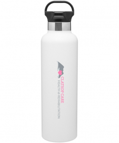 24 oz powder coated double wall 18/8 stainless steel thermal bottle with copper vacuum insulation, threaded gear-shaped insulated lid and carrying handle Complies with FDA, Prop 65. 11.25" H x 3" W