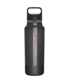 25 oz double wall 18/8 stainless steel thermal bottle with copper vacuum insulation, threaded one-touch push-button lid, locking mechanism, carrying handle, and rubberized base - patent pending - gift box included; Hand wash recommended; Do not microwave; 11 h x 3 w ; 739mL.
