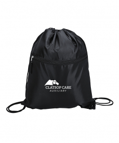 Sport bag with a contrast color front-zippered pocket, reinforced corners and a drawstring closure. Drawstrings double as backpack straps. 12 1/2" W x 15 1/2" H x 3/16" D.