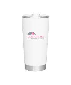 20 oz double wall 18/8 stainless steel thermal tumbler with vacuum insulation, and clear acrylic push-on swivel lid. Hand wash recommended. Do not microwave. Complies with FDA, Prop 65. 7.125" H x 3.75" W