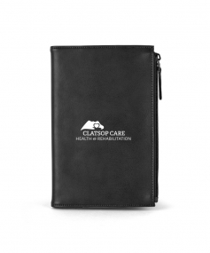 Stylish executive notebook with PU/split leather outer and suede inner cover. Features large zipper pocket (fits up to iPhone 7S Plus). Includes 80-sheet replaceable notebook. 5 3/4" H x 8 1/2" H