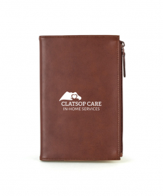 Stylish executive notebook with PU/split leather outer and suede inner cover. Features large zipper pocket (fits up to iPhone 7S Plus). Includes 80-sheet replaceable notebook. 5 3/4" H x 8 1/2" H