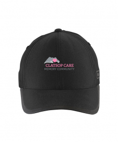 Fabric is 100% polyester pinhole woven mesh with structured profile, mid features, black reflective O heat transfer on side panel black reflective welding on bill, and OGIO seam taping. Low-profile hook and loop with black reflective stacked O heat transfers.