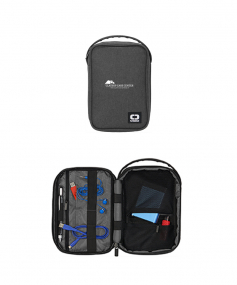 The ultimate travel organizer, the Vault holds cords, charging bricks, memory cards and more tech gear. Made with 900D poly two-tone with PU coating/200D poly lining. Padded grab handle Interior zippered pocket Elastic loops for cords and pens Two interior zippered mesh pockets. 9" H x 6" W x 2.5" D